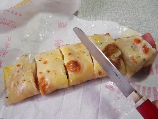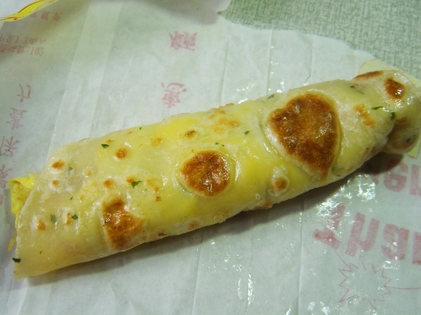 外帶的蛋餅沒有切,是用長型紙袋裝起來