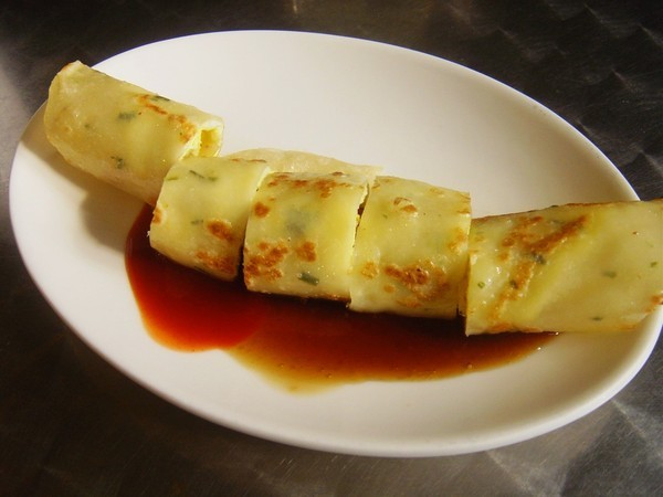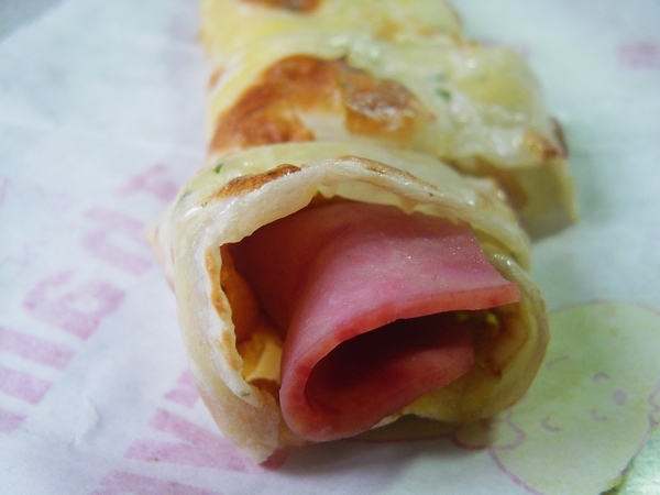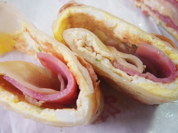 感覺蛋餅非常厚實,光是看餅皮煎得如此酥脆就覺得好吃了
