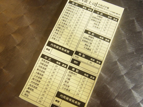內用單都放在每張桌上,當然要先有位置才能填內用單
