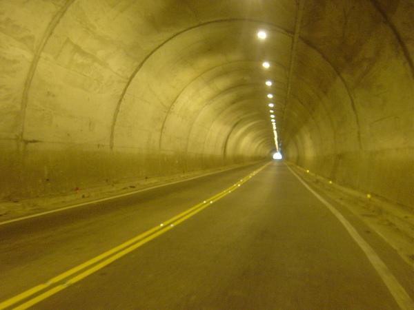隧道不能一眼看到底,因為裡面有個約30度地轉彎在西端